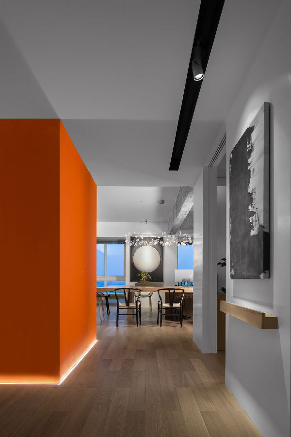 在地材選擇上,幾乎沒有任何的爭議統一選擇了淺色系木地板。從這個角度望過去,從走廊一路延伸至會議室的整體地板和諧而自然。地板除了要美觀自然,更重要的是看中耐磨度,畢竟辦公室的妹妹們都踩著“恨天高”!
