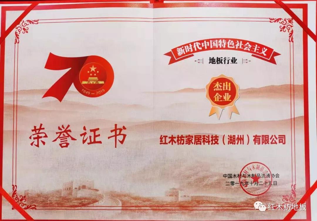 2019年10月25日,由中國木材與木制品流通協會和湖州市人民政府共同主辦的“2019世界木地板大會暨第六屆南太湖論壇”在浙江湖州盛大召開。紅木枋地板應邀出席大會,并榮獲“新時代中國特色社會主義地板杰出企業”,董事長張超斬獲“新時代中國特色社會主義地板杰出人物”大獎。