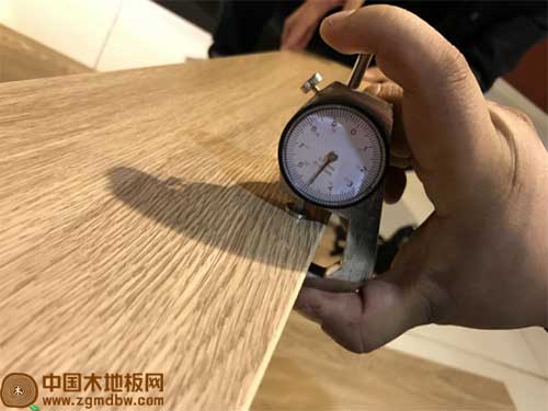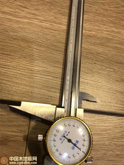 等到地板的溫度在人體皮膚的承受范圍之后,張總親自測(cè)量了地板的寬度與厚度,依舊是寬度146㎜,厚度15㎜,沒有絲毫變化,可見紅木枋地板的耐水性能極佳。